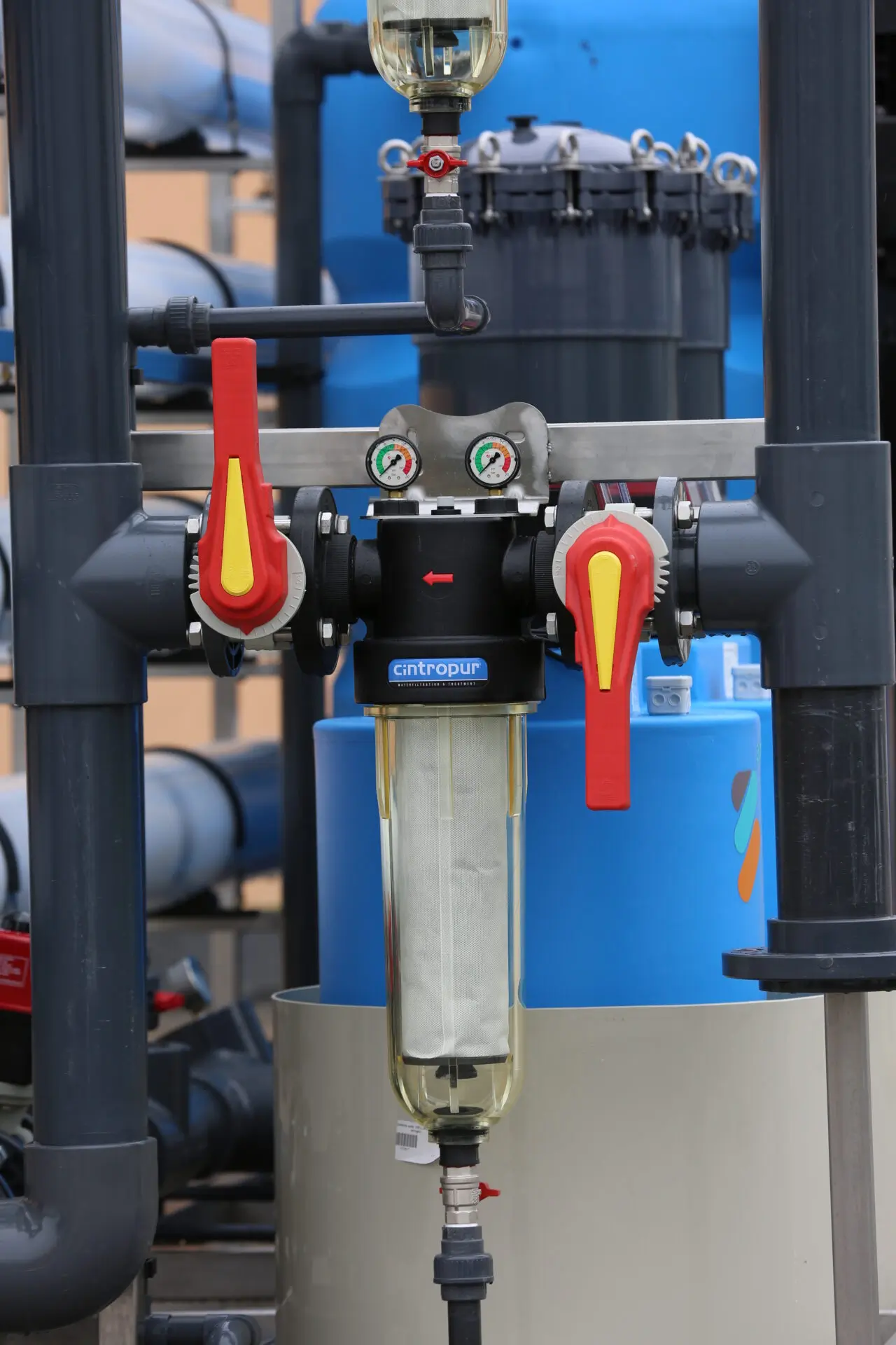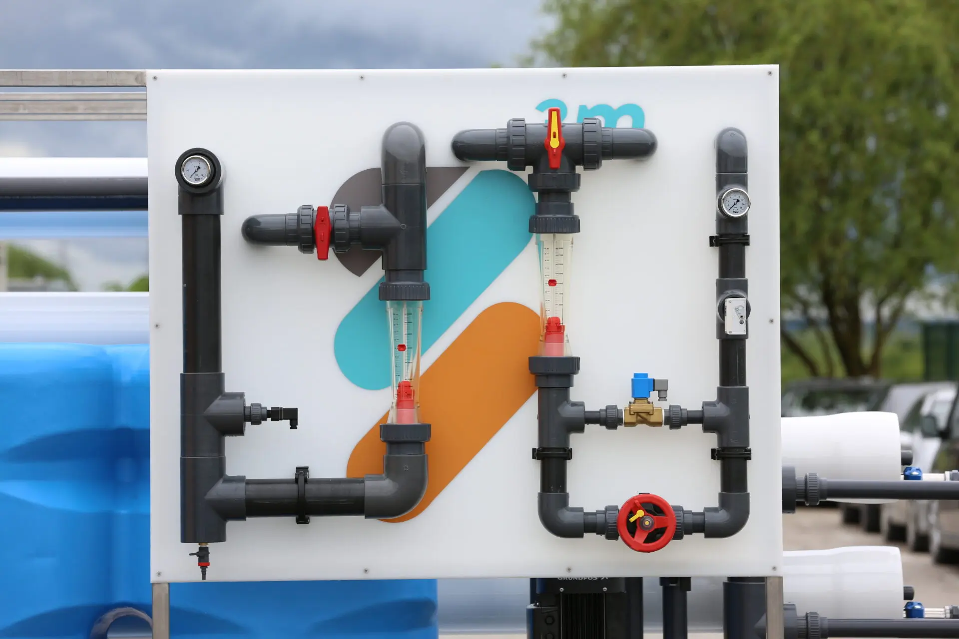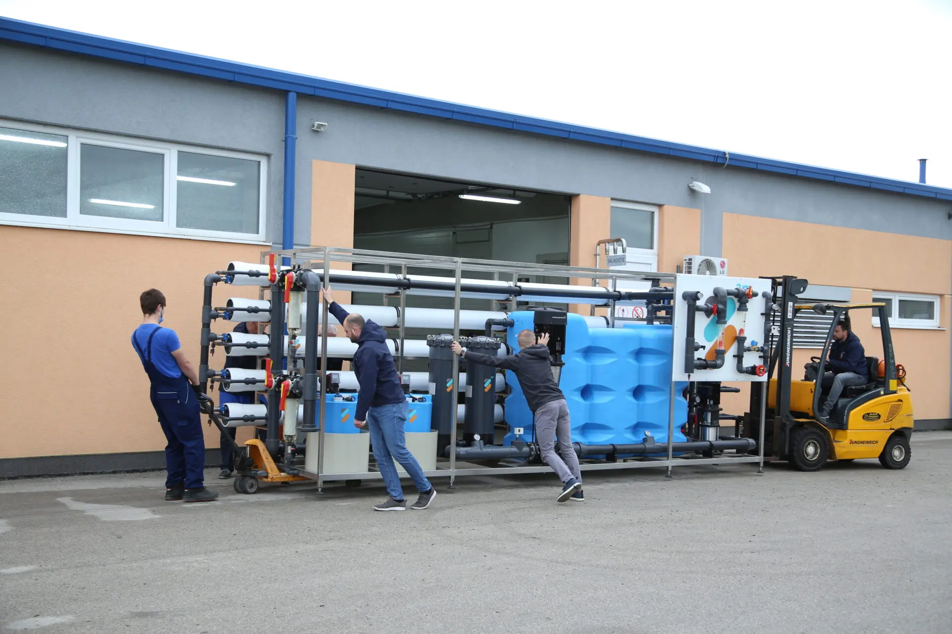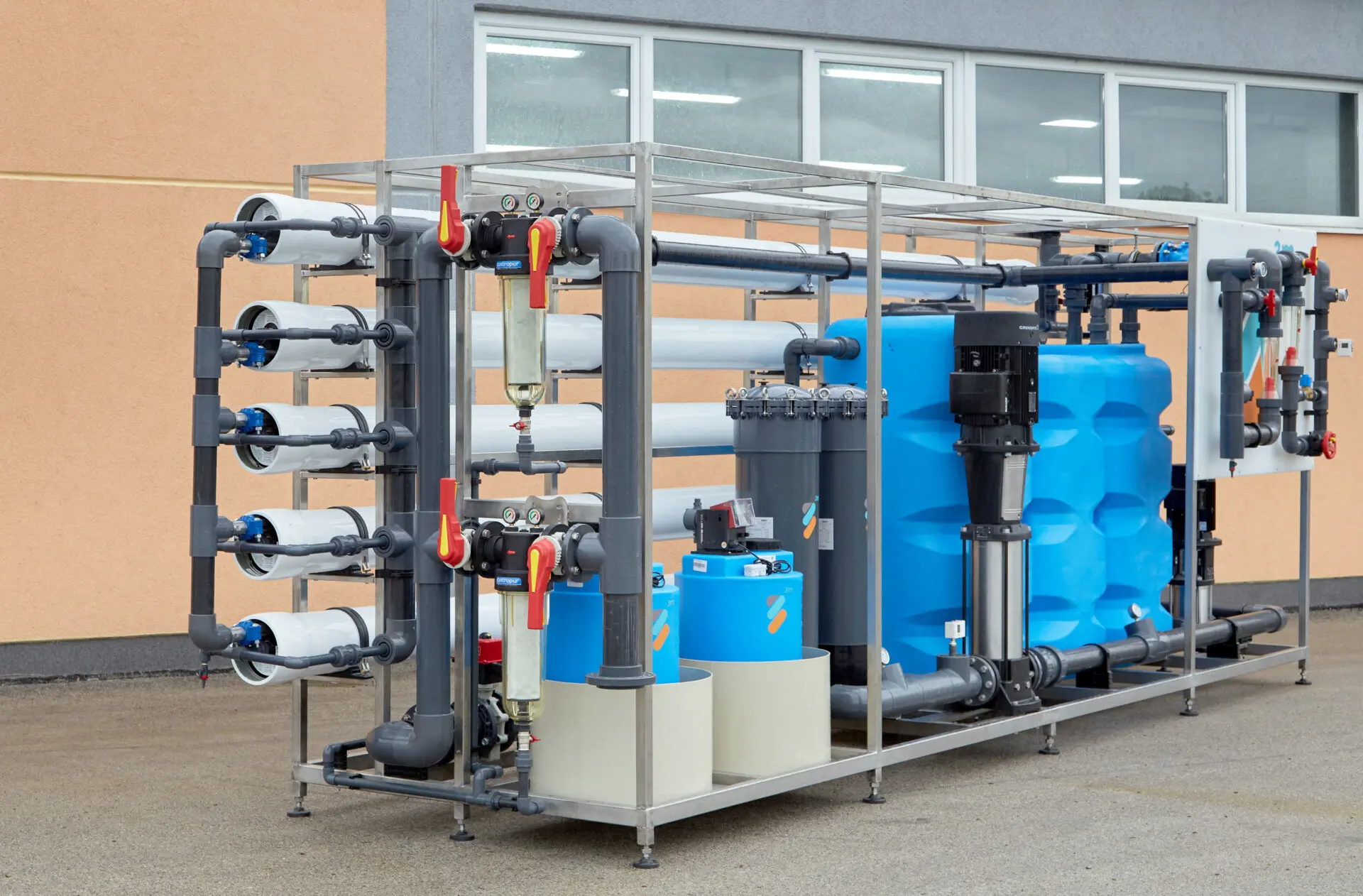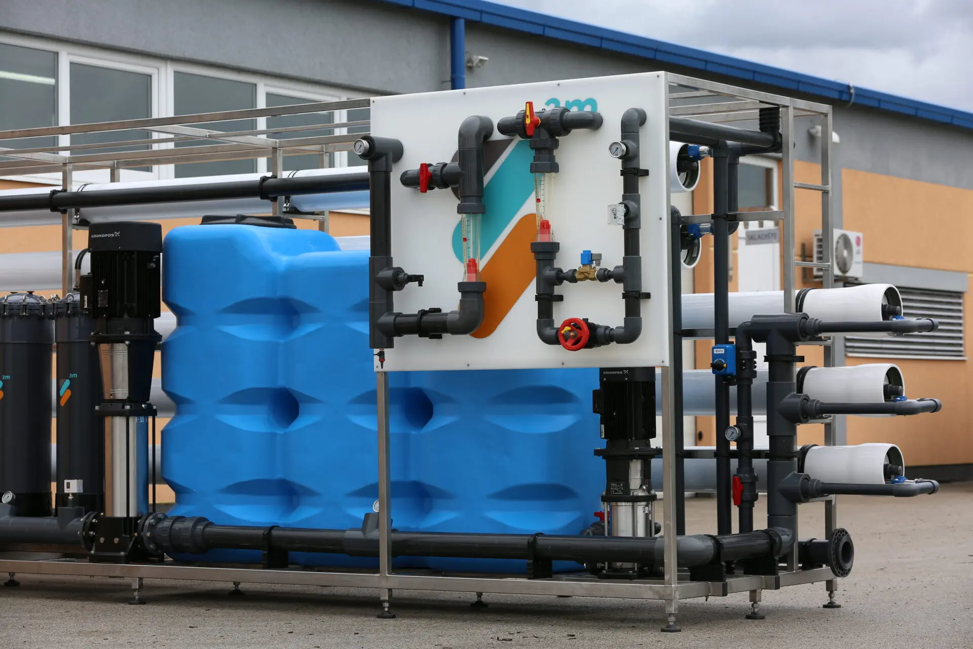 Reverse osmosis system design that has a capacity of 30 m3/h; the system is designed to fill bottles of table water.
